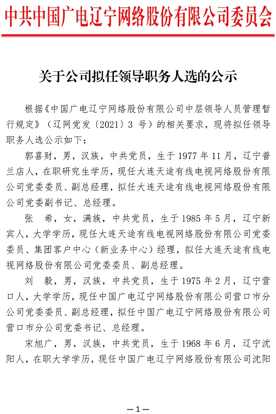 中國廣電遼寧網(wǎng)絡(luò)股份有限公司(簡稱中國廣電遼寧公司)前身為成立于2010年2月的北方聯(lián)合廣播電視網(wǎng)絡(luò)股份有限公司,系中央國有文化企業(yè)——中國廣電網(wǎng)絡(luò)股份有限公司省級(jí)子公司、遼寧省國有文化高新技術(shù)企業(yè),是按照現(xiàn)代企業(yè)制度打造的集網(wǎng)絡(luò)建設(shè)、傳輸、運(yùn)營及多功能開發(fā)與應(yīng)用為一體綜合網(wǎng)絡(luò)運(yùn)營商。